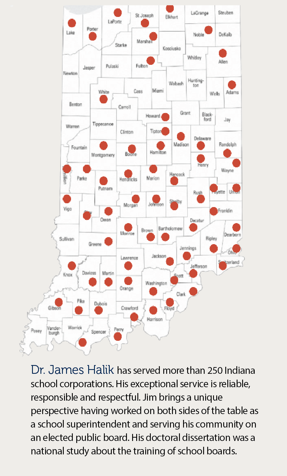 It has been a pleasure to have served the following schools: more than 200 School Districts/School Corporations/Organizations in 60 Indiana Counties